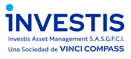Productos y servicios organizados y administrados por Investis Asset Management S.A.S.G.F.C.I., Agente de Administración de Productos de Inversión Colectiva (FCI) registrado ante la Comisión Nacional de Valores (“CNV”) N°22, CUIT 30-69.726.541-0, una sociedad del grupo Vinci Compass (Vinci Compass Investments Ltd). Carlos Pellegrini 1023, piso 14°, CABA. Investis es sociedad constituida bajo las leyes de la República Argentina, sus operaciones son independientes de otras compañías del grupo. Los accionistas limitan su responsabilidad al capital aportado. Banco de Valores S.A., Agente de Custodia registrado ante CNV N°6, CUIT 30-57.612.427-5. Sarmiento 310, CABA.